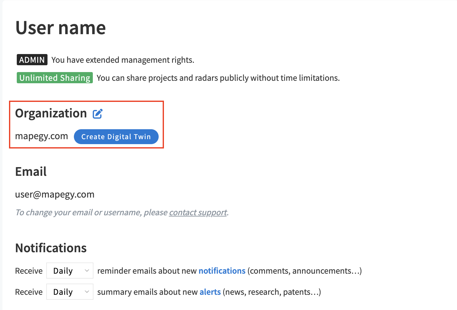 The Create your digital twin feature helps you generate a structured Portfolio based on your organization’s public footprint.