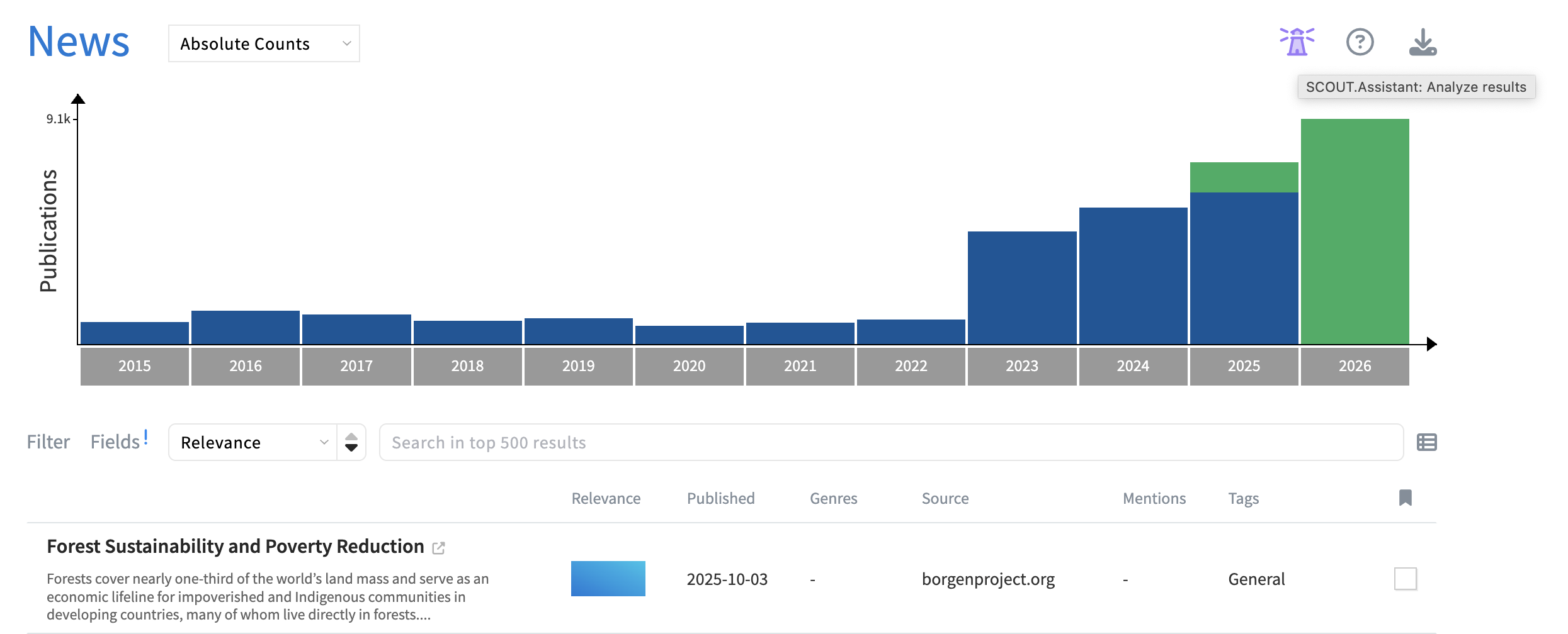 SCOUT.Assistant is your on‑demand analyst. It highlights the most critical aspects of your search.